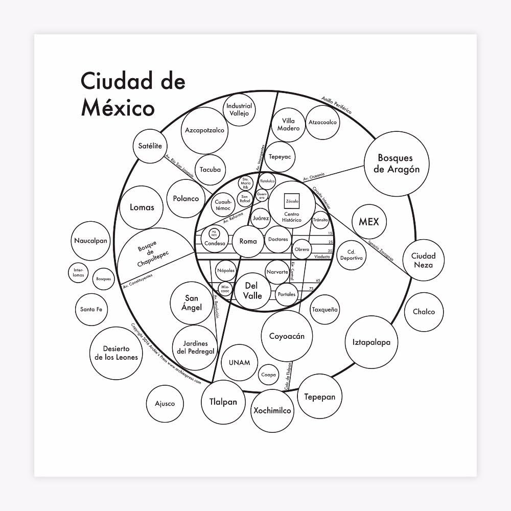 Mexico City Abstract World City Map Print Poster Print On Paper Or