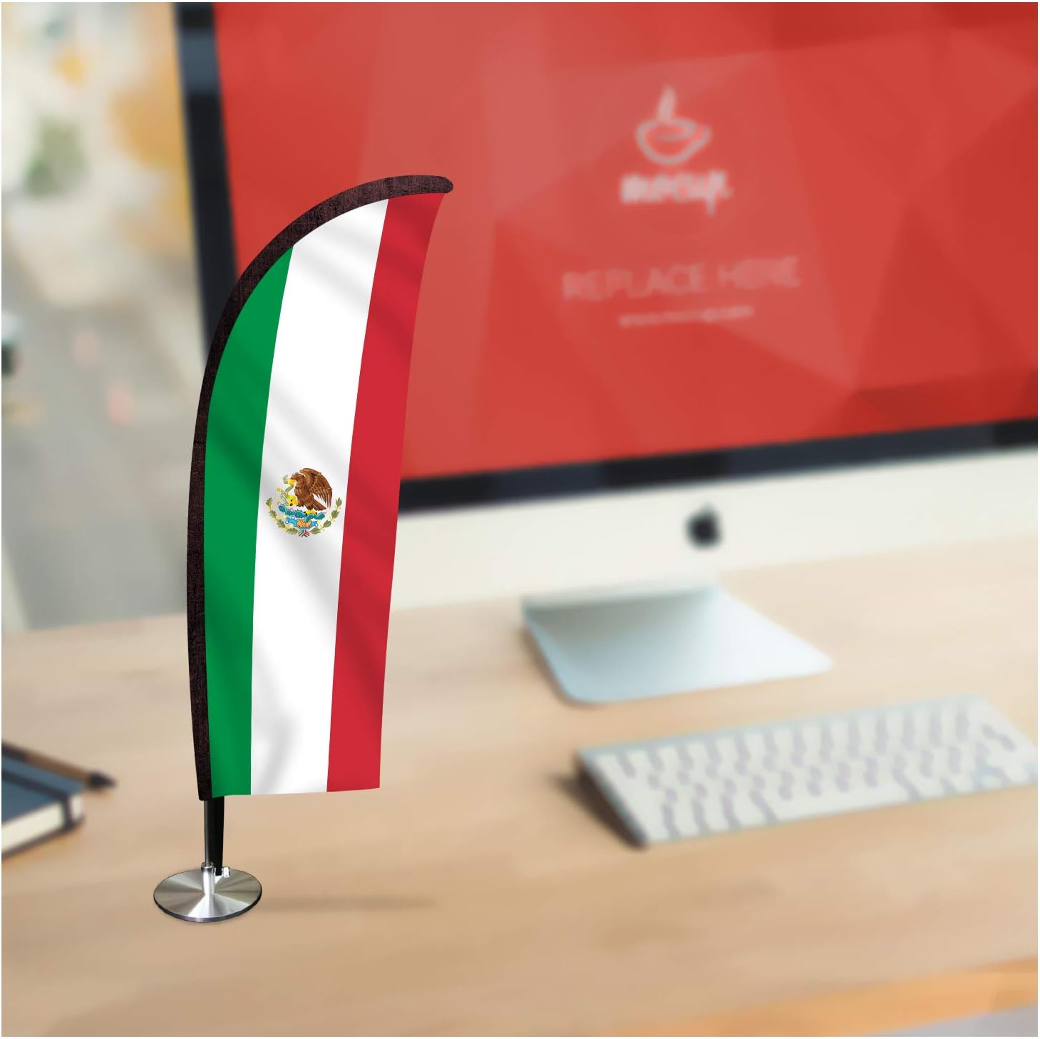 Amazon Com Mexico Desk Flag Blade Shape Mini Desk Table Top Flag Stand For Office Desk Decoration International World Country Table Flag Single Side Print Knitted Fabric Flag 5 51 X 17 71