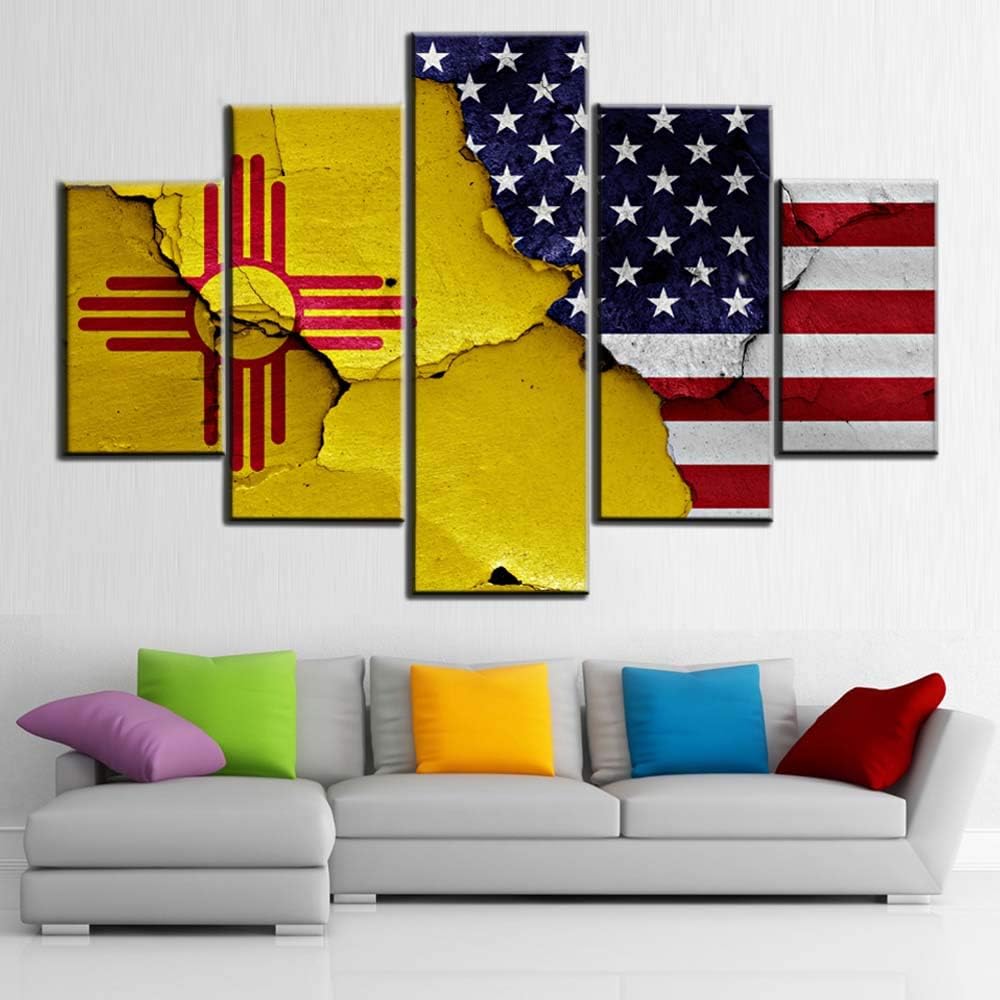 Amazon Com American Flag Art Usa New Mexico State Flags Wall Art Contemporary Decor Patriotic Pictures 5 Piece