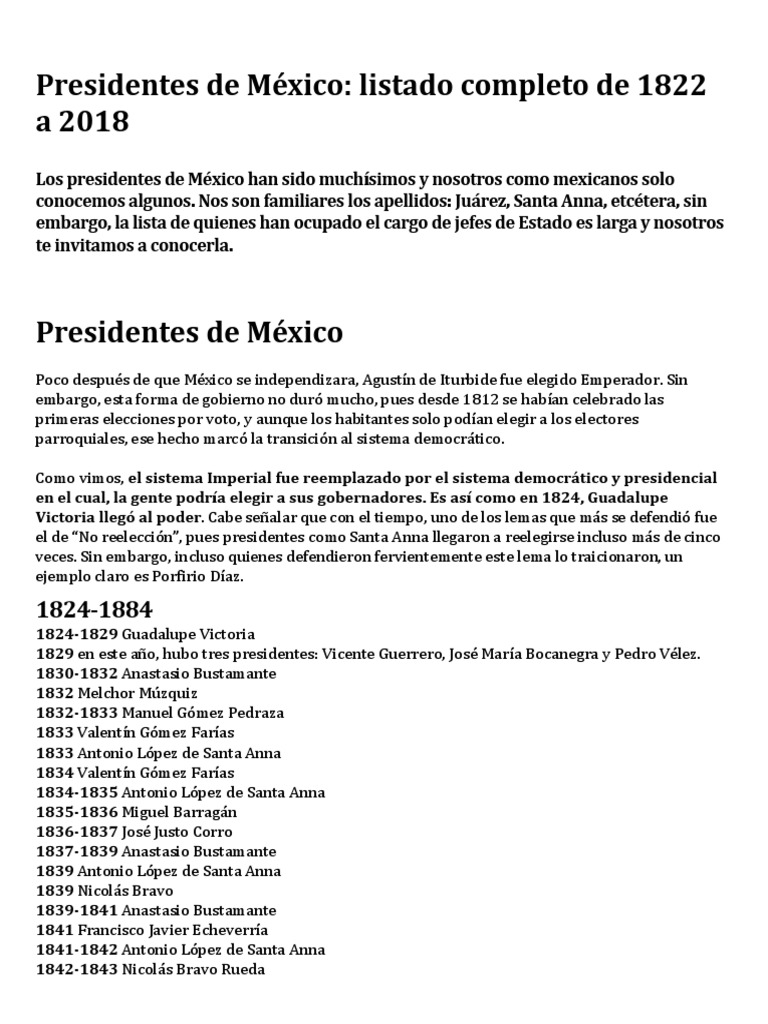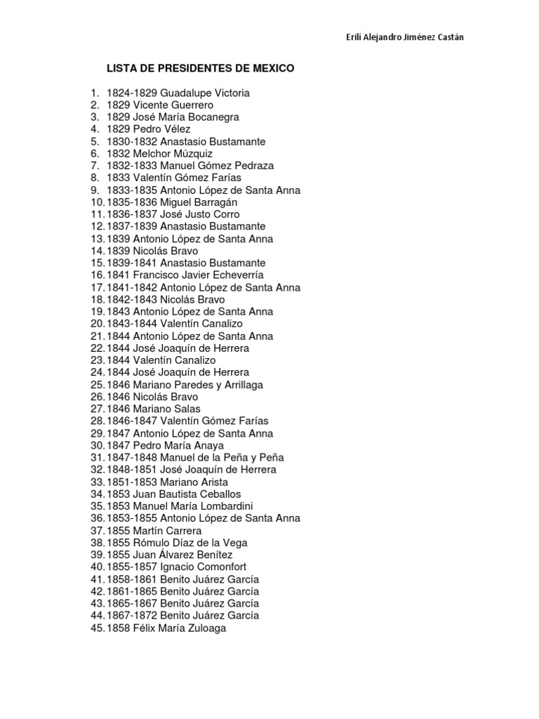 Lista Completa De Los Presidentes De Mexico Univerxum