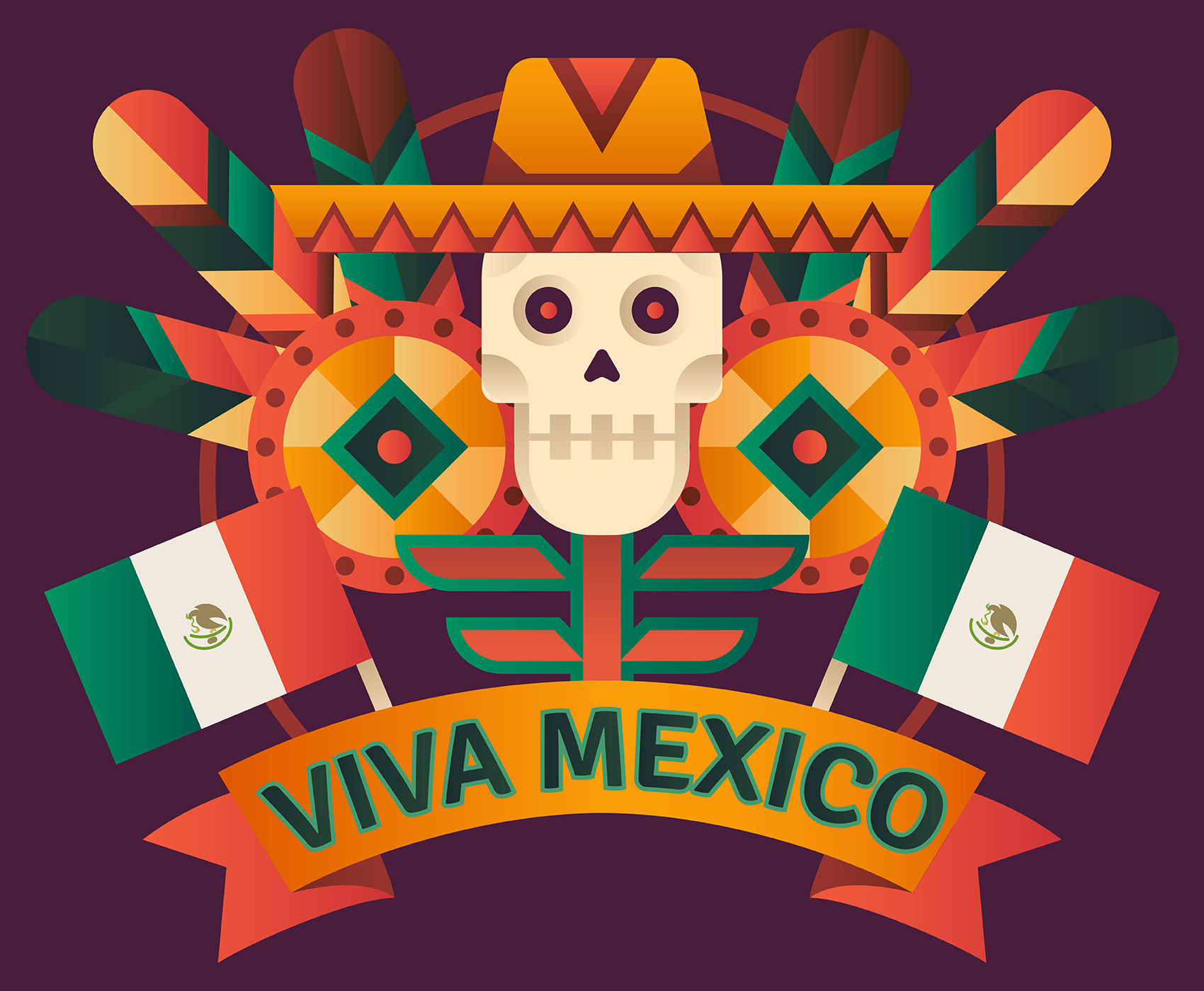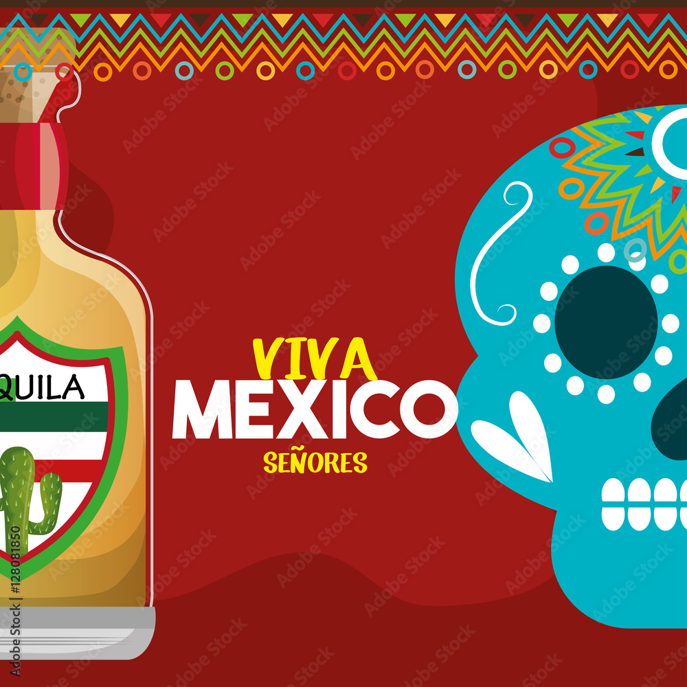 Viva Mexico Poster Mexican Paper Decoration Illustration