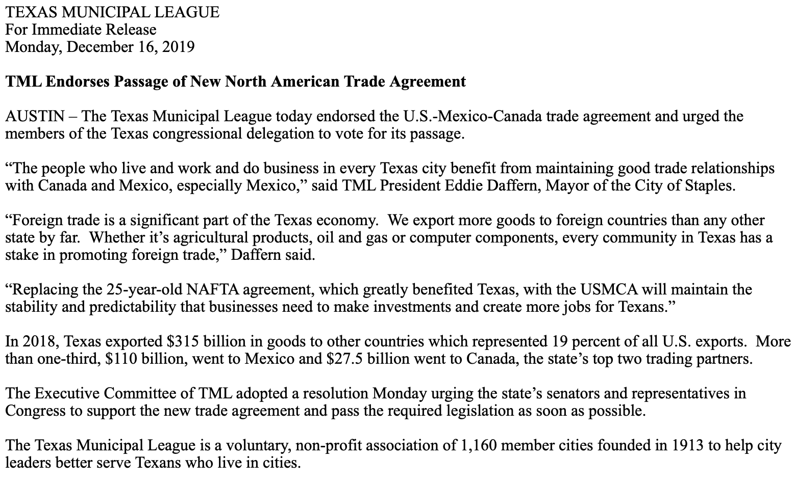 Tx Municipal League On Twitter Foreign Trade Is A Significant Part Of The Texas Economy We Export More Goods To Foreign Countries Than Any Other State By Far Today Tml Has Endorsed